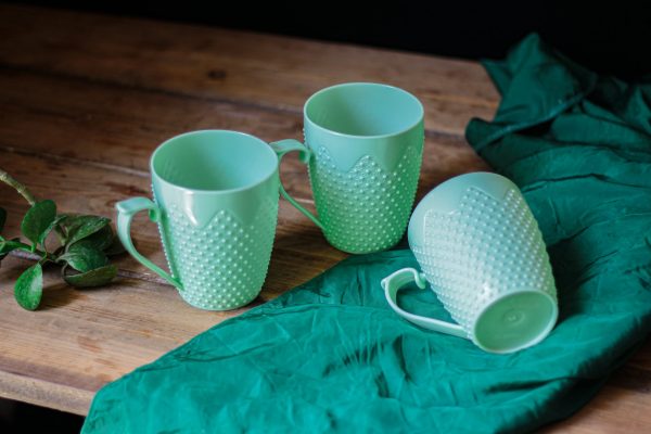 اجتذب كوب المقبض الماسي العملاء بسبب مجموعة الإبريق والوعاء وحجمه الكبير (300 مل).